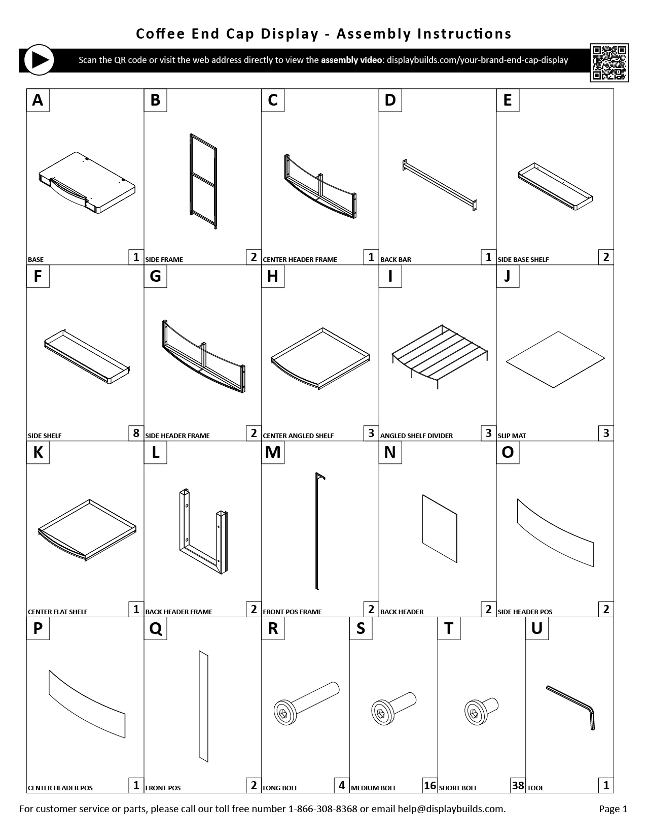 Missing parts? Please contact us through this page or directly at help@displaybuilds.com and provide the job number and project description along with the missing part(s) as identified in the instruction sheet.